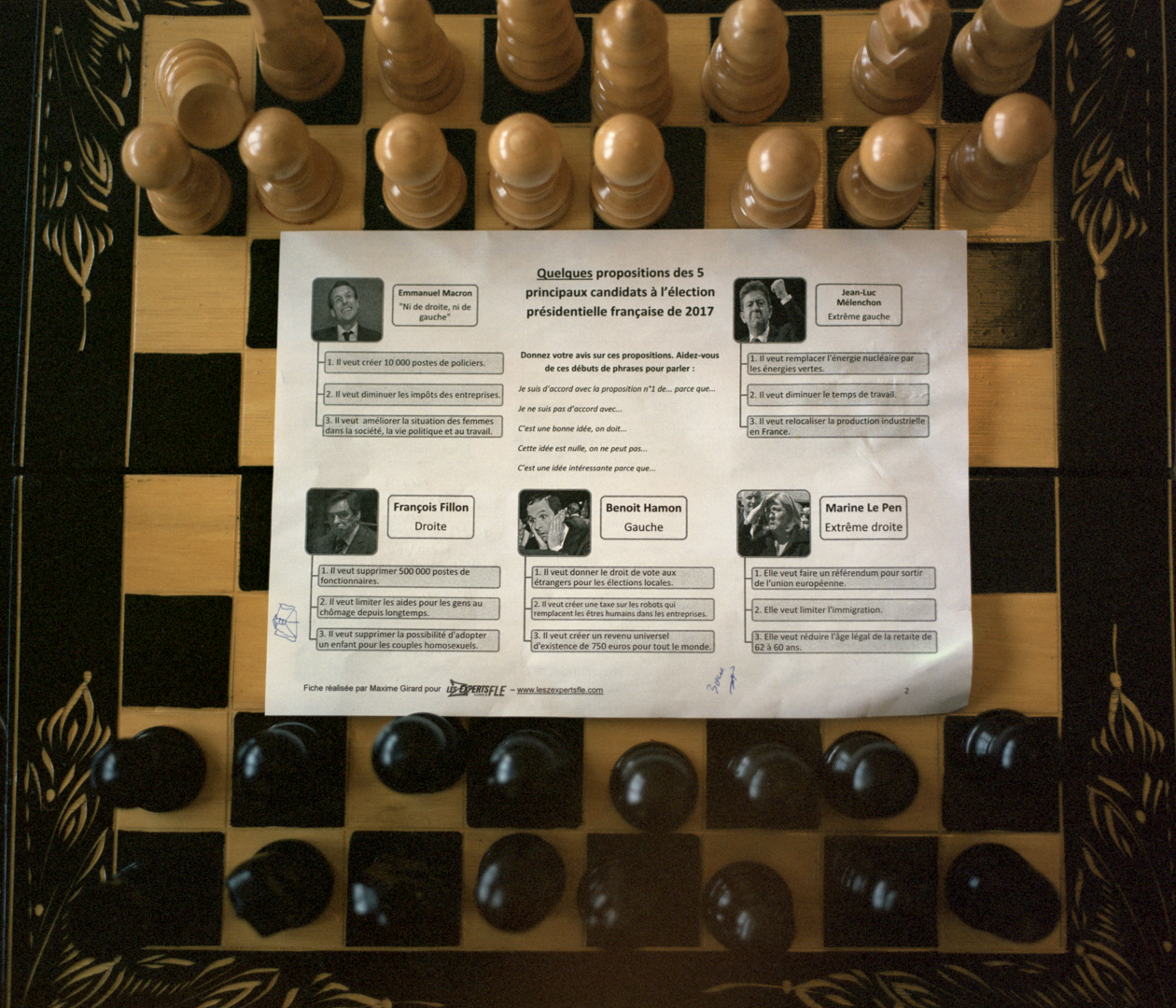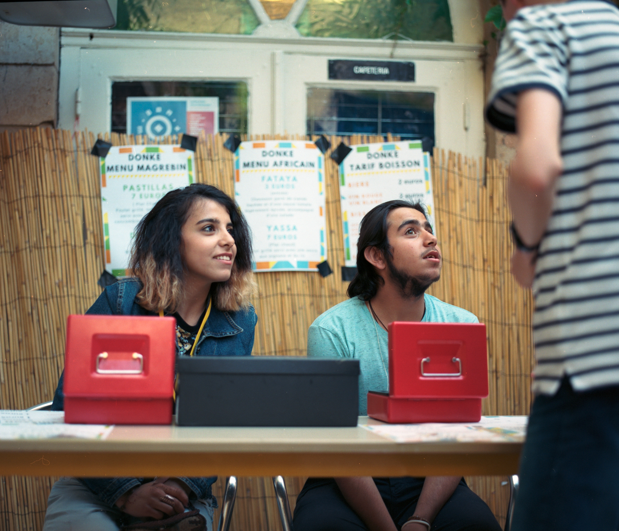 Nous avons pensé la narration de ce projet à la manière d’un film : la ligne centrale retrace le quotidien de la famille, celle du dessus nous montre les rencontres, les liens sociaux, tandis que les lignes du dessous abordent la question de la langue, les différentes activités menées ainsi qu’un volet un peu plus politique.