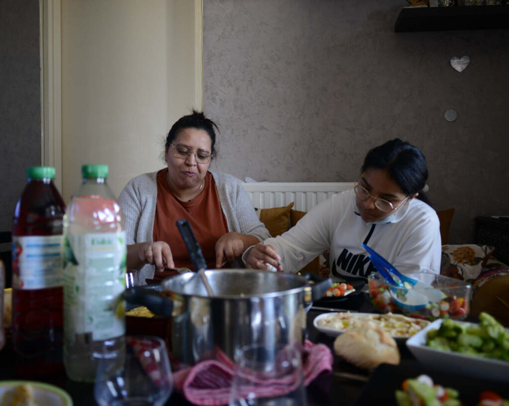 Je travaille régulièrement dans ce quartier depuis cinq années. J’ai le sentiment que la position des femmes y est ambigüe : elles occupent à la fois un rôle primordial dans les associations et l’entraide qui en découle et sont dans le même temps moins visible dans l’espace public. Ce qu’il en est sorti est l’entraide qui existe entre les femmes et la force qu’elles mobilisent pour conjuguer travail, famille, amitiés, bénévolat… Les témoignages recueillis révèlent la façon dont les femmes façonnent leur quotidien et la manière dont les adolescentes envisagent leur avenir. Il y est question des défis déjà relevés et de ceux qui restent encore à accomplir.