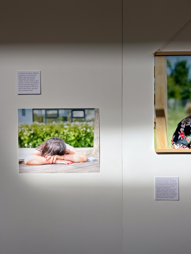 À partir des entretiens menés durant plus d’une année, nous avons construit une performance durant laquelle les femmes volontaires lisaient sur scène certains passages de ces entretiens. Les photographies sont accompagnées d’une pièce sonore construite autour de ces rencontres. Le musicien Lisko a aussi composé une musique autour de ces mêmes entretiens.