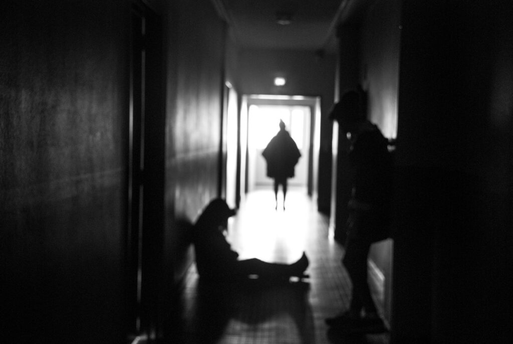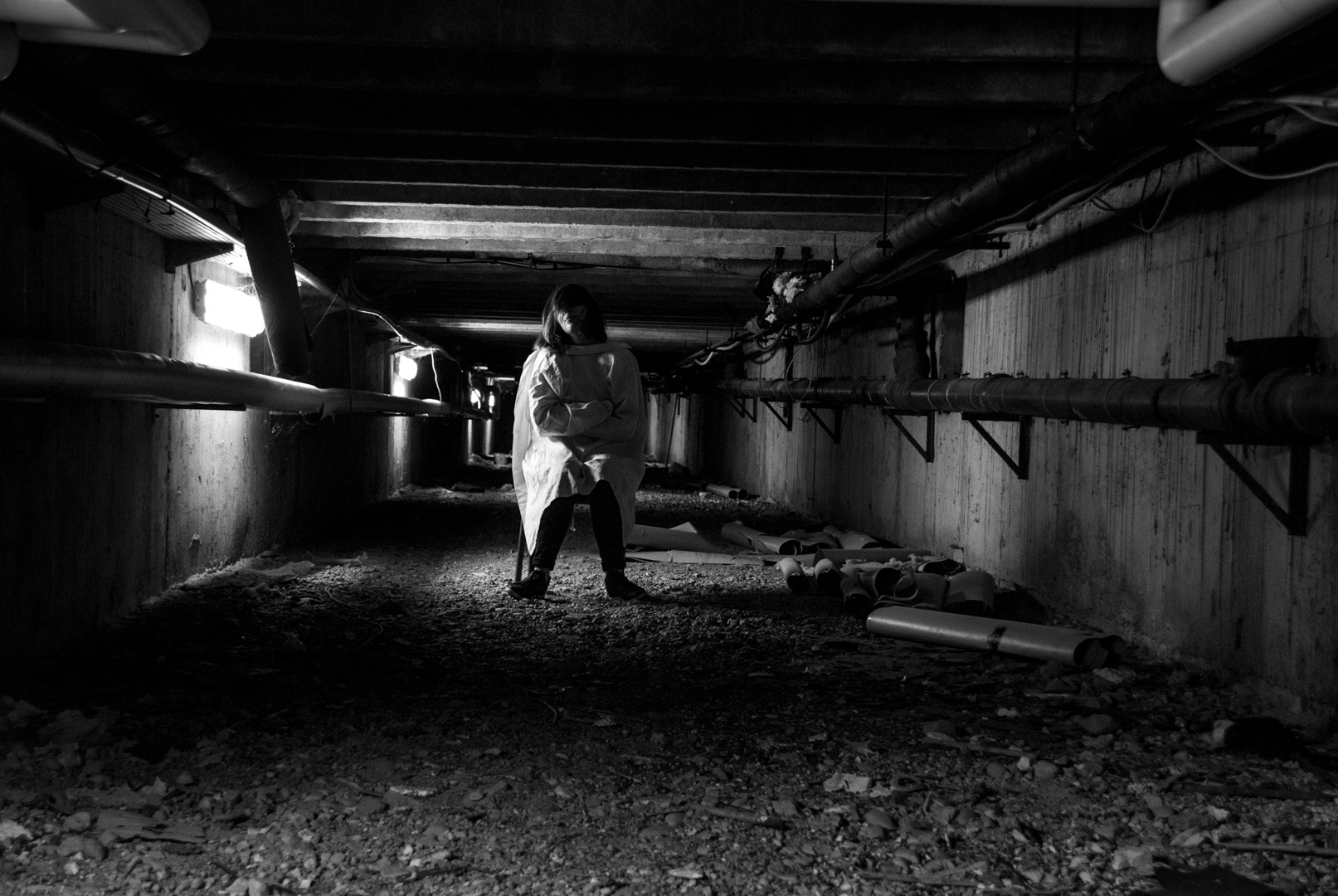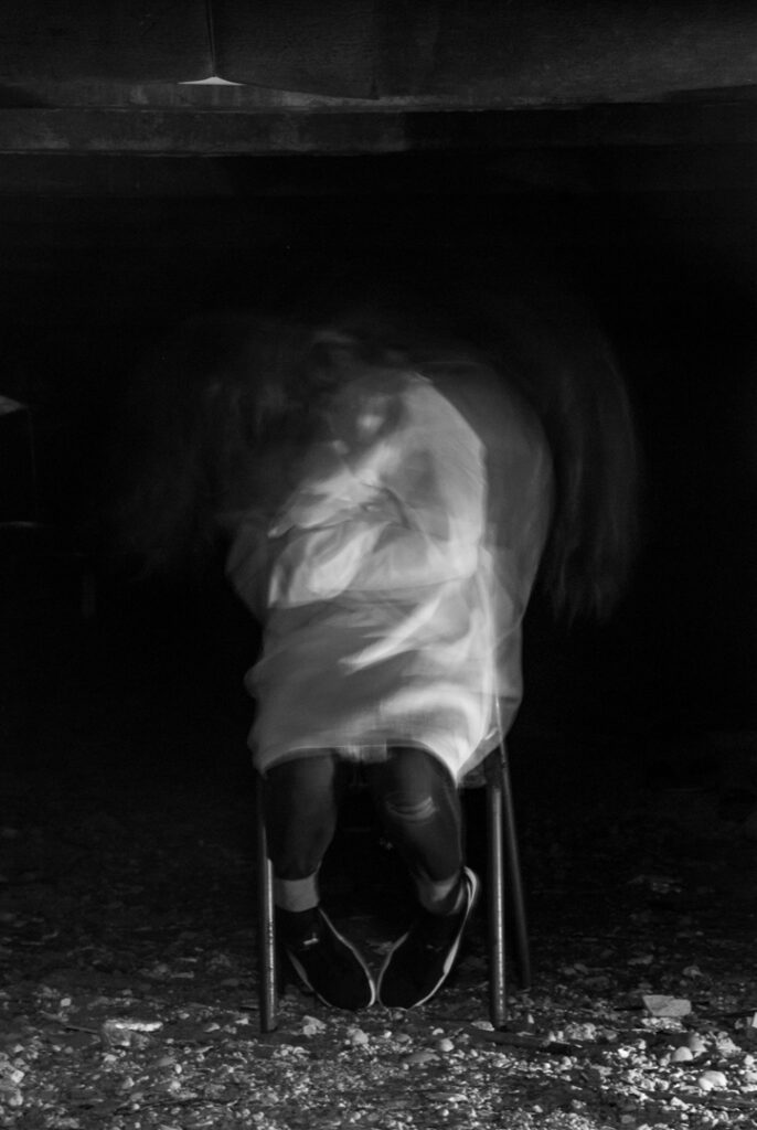 Les séances sur le faux documentaire se sont déroulées en deux temps. Dans un premier temps, chaque groupe a réalisé une séance dans laquelle s’est dessiné une trame narrative concernant le faux documentaire et les groupes ont réalisé les premières photographies. Les groupes prenaient appuie sur ce qui avait été réalisé par les groupes précédents afin de continuer la trame narrative (un meurtre dans le lycée). Les élèves devaient créer et imiter les codes d’images/preuves. Pour cet atelier, nous avons retenu prioritaire les codes esthétiques du journalisme et du reportage. Le deuxième temps de l’atelier était consacré à un premier tri de ces photographies, à une position critique de celles-ci (les codes sont-ils reconnaissables ?), ainsi qu’à la création des légendes. Les photographies jugées ratées lors des premières séances ont été refaite à ce moment-ci.
